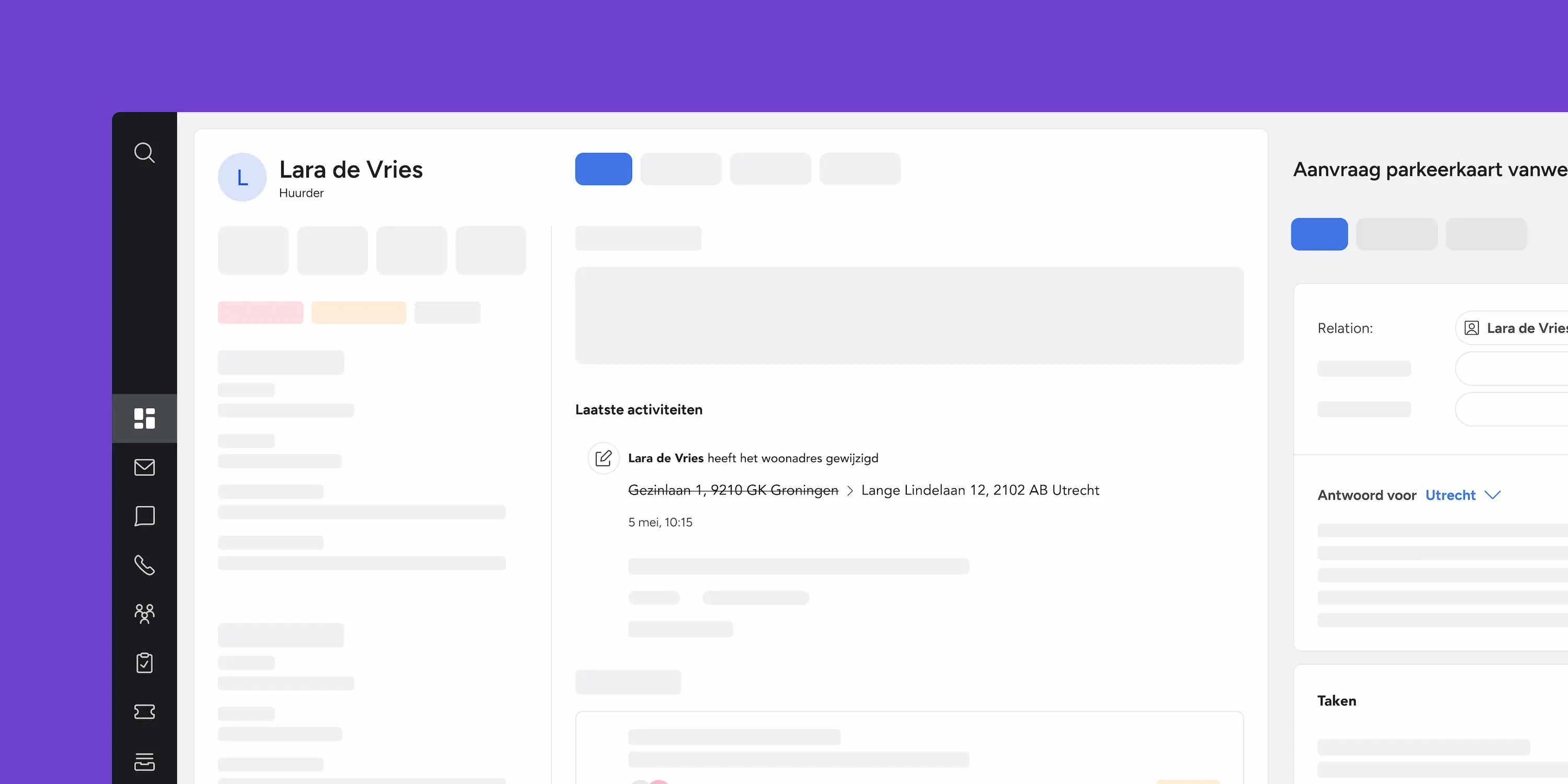 Geeft jouw medewerkers een 360º klantbeeld van je huurders. Zo weet iedereen precies wat er speelt en kom je gemakkelijk afspraken na. Altijd, op tijd.